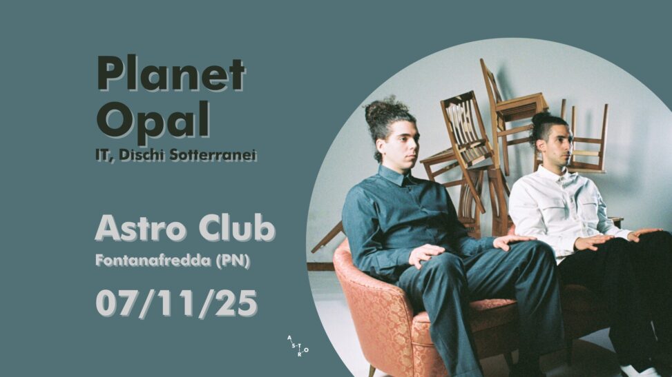 Il duo italiano Planet Opal arriva all’Astro con un sound che fonde post-punk, disco-punk, elettronica e kraut-rock surrealista.
